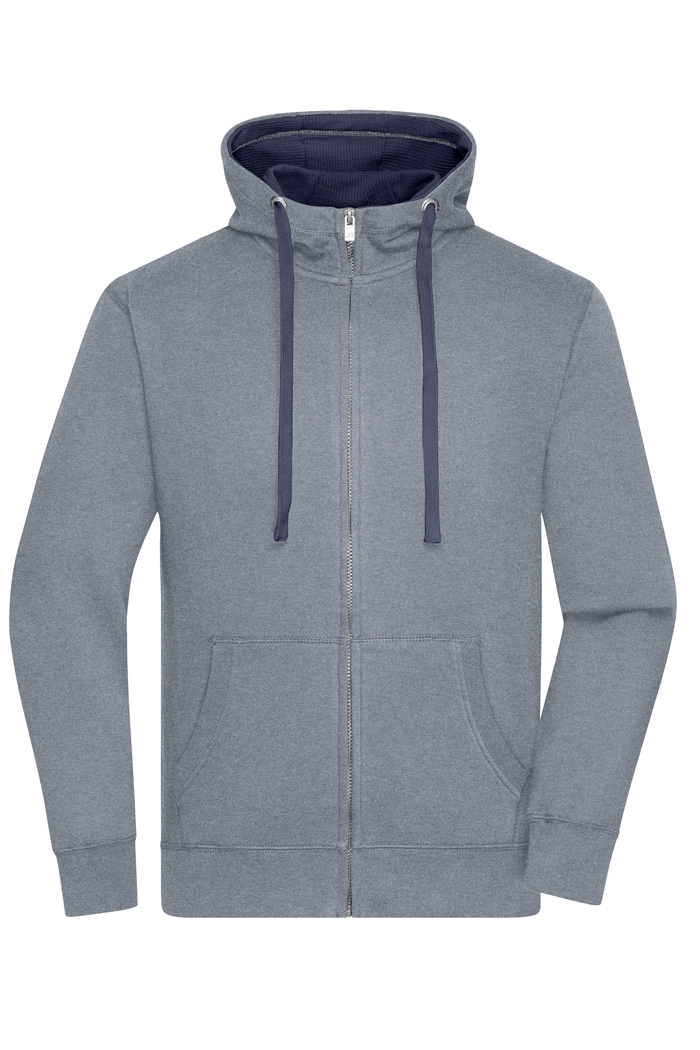 Das ist Deine neue Lieblingsjacke! Die dicke Sweat-Qualität ist innen weich angeraut und an kühlen Sommerabenden eine Wohltat. Die stabile und zugleich stylishe Verarbeitung mit markanten Flatlocknähten wird euch begeistern. Für die männlichen Züge sorgt der kernige Metall-Zip und die großen Metallösen der Kapuzenkordel. Die doppelte Kapuze ist ebenfalls sehr hochwertig mit Kontrastinnenfutter verarbeitet. Alle Bündchen sind dank Elasthan besonders komfortabel und formstabil. Die große Känguruhtasche verstaut alles Nötige griffbereit.